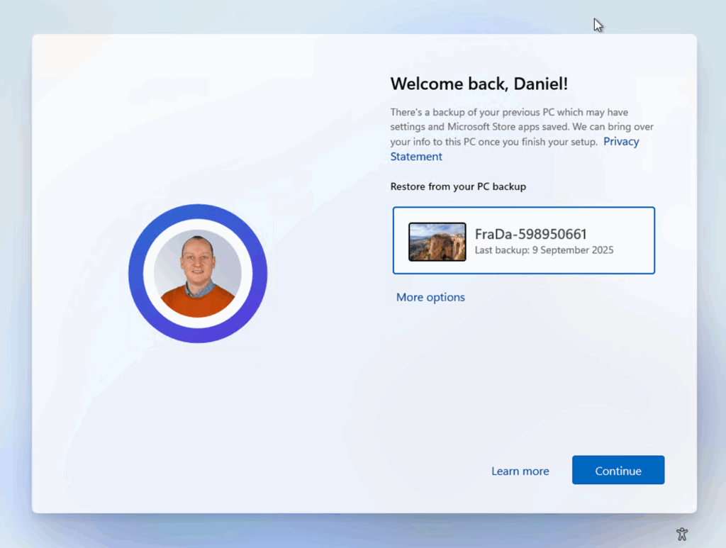 This isn’t just about convenience—it’s about continuity. Whether you’re migrating tenants, refreshing hardware, or onboarding new employees, Windows Backup ensures: