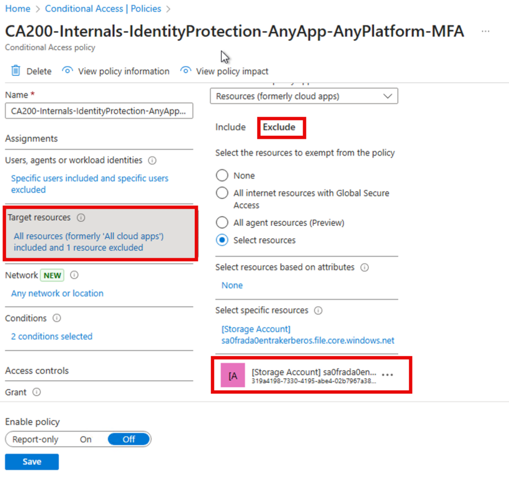 - Exclude the Storage Account app from your MFA policy