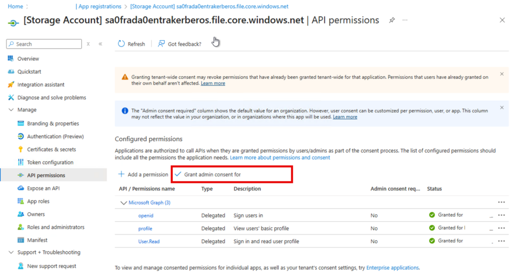 - Ensure the servicePrincipal for the Storage Account has:
