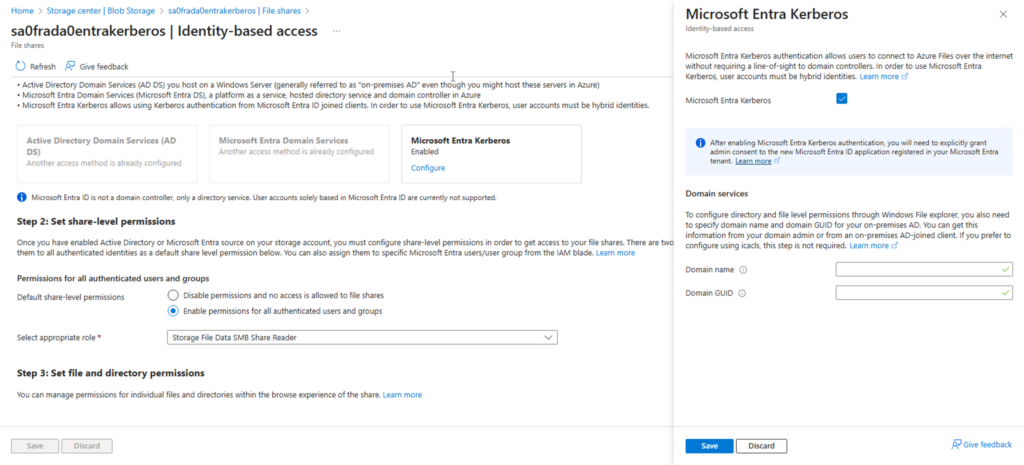 - Enable Entra Kerberos Authentication