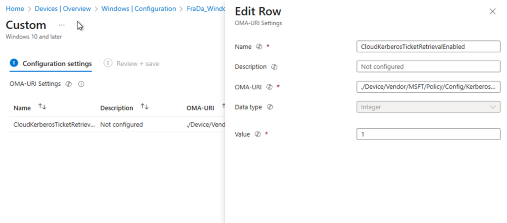 CloudKerberosTicketRetrievalEnabled - OMA-URI: