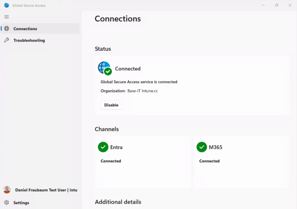 Once installed, the client transparently routes Microsoft-bound traffic through the secure inspection path. This is what allows the device to be recognized as part of your Compliant Network.